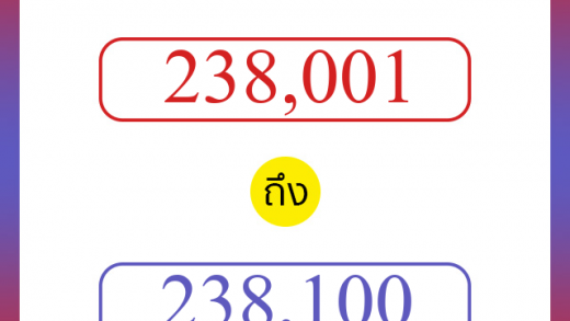 | 541338 | Five hundred forty one thousand three hundred and thirty eight | ไฟฟ์ ฮันเดรด โฟร์ที วัน เธาซันด์ ธรี ฮันเดรด แอนด์ เธอที เอท | ห้าแสนสี่หมื่นหนึ่งพันสามร้อยสามสิบแปด |