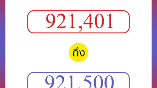 | 741921 | Seven hundred forty one thousand nine hundred and twenty one | เซฟเวิน ฮันเดรด โฟร์ที วัน เธาซันด์ ไนน์ ฮันเดรด แอนด์ ทเวนที วัน | เจ็ดแสนสี่หมื่นหนึ่งพันเก้าร้อยยี่สิบเอ็ด |