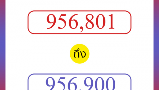 | 780299 | Seven hundred eighty thousand two hundred and ninety nine | เซฟเวิน ฮันเดรด เอทที เธาซันด์ ทู ฮันเดรด แอนด์ ไนน์ที ไนน์ | เจ็ดแสนแปดหมื่นสองร้อยเก้าสิบเก้า |
