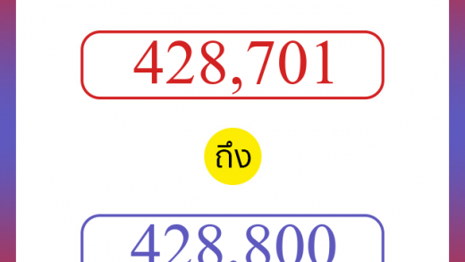 | 856701 | Eight hundred fifty six thousand seven hundred and one | เอท ฮันเดรด ฟิฟที ซิกซ์ เธาซันด์ เซฟเวิน ฮันเดรด แอนด์ วัน | แปดแสนห้าหมื่นหกพันเจ็ดร้อยหนึ่ง |